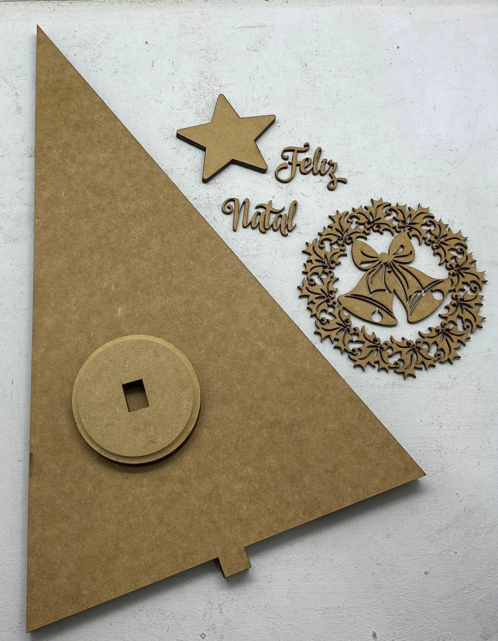 Descubra o encanto do Pinheiro em MDF de 12mm (41,5x25 cm) com sinos, uma peça que une resistência e charme para transformar sua decoração natalina. As peças vão soltas, facilitando a personalização e permitindo que você decore cada detalhe do seu jeito, soltando a criatividade para criar ambientes únicos e acolhedores.