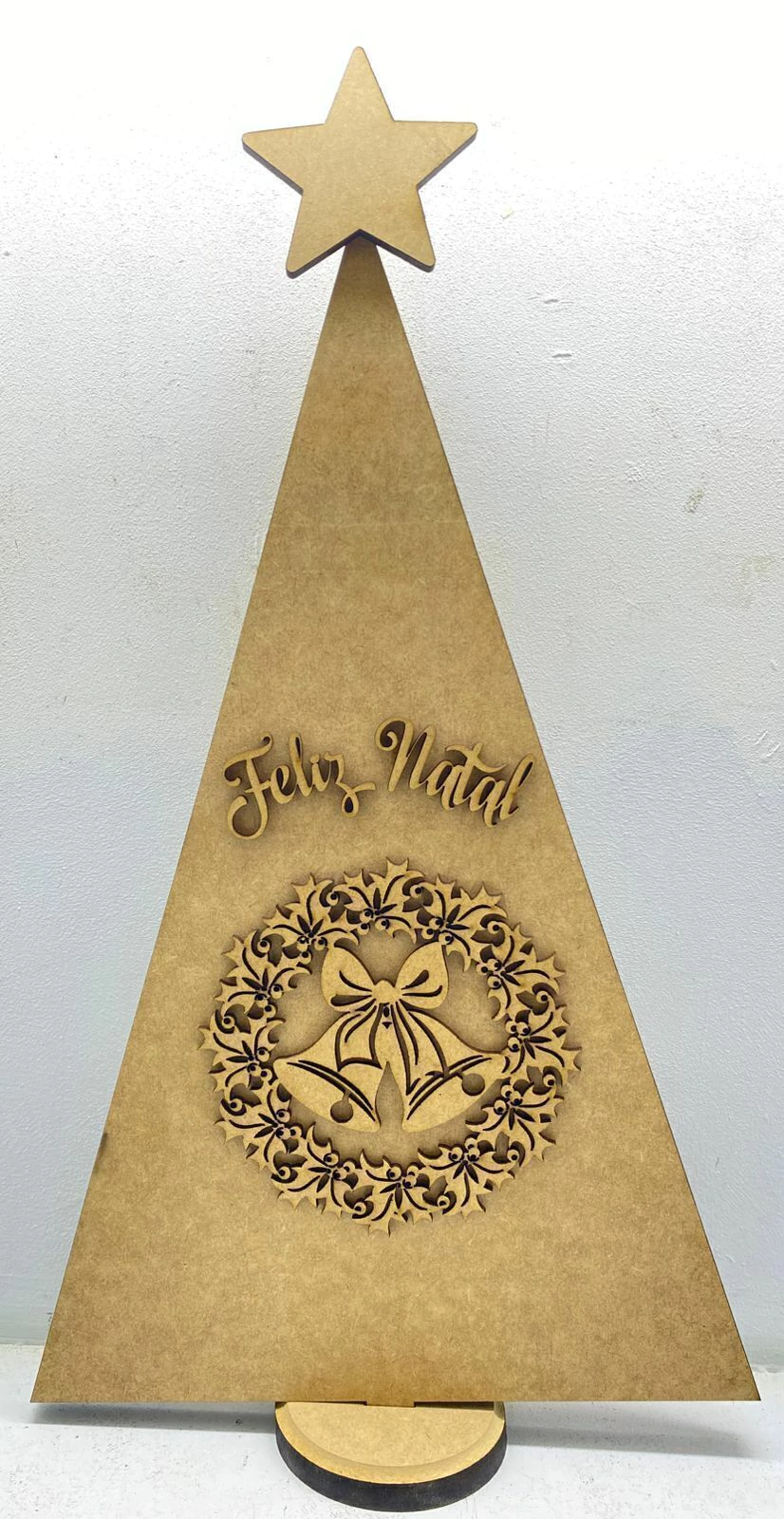 Com medidas aproximadas, este pinheiro é perfeito para se adaptar a diferentes espaços, seja em sua casa, escritório ou evento especial. O MDF de 12mm oferece acabamento robusto e elegante, valorizando a beleza dos sinos que completam o design.